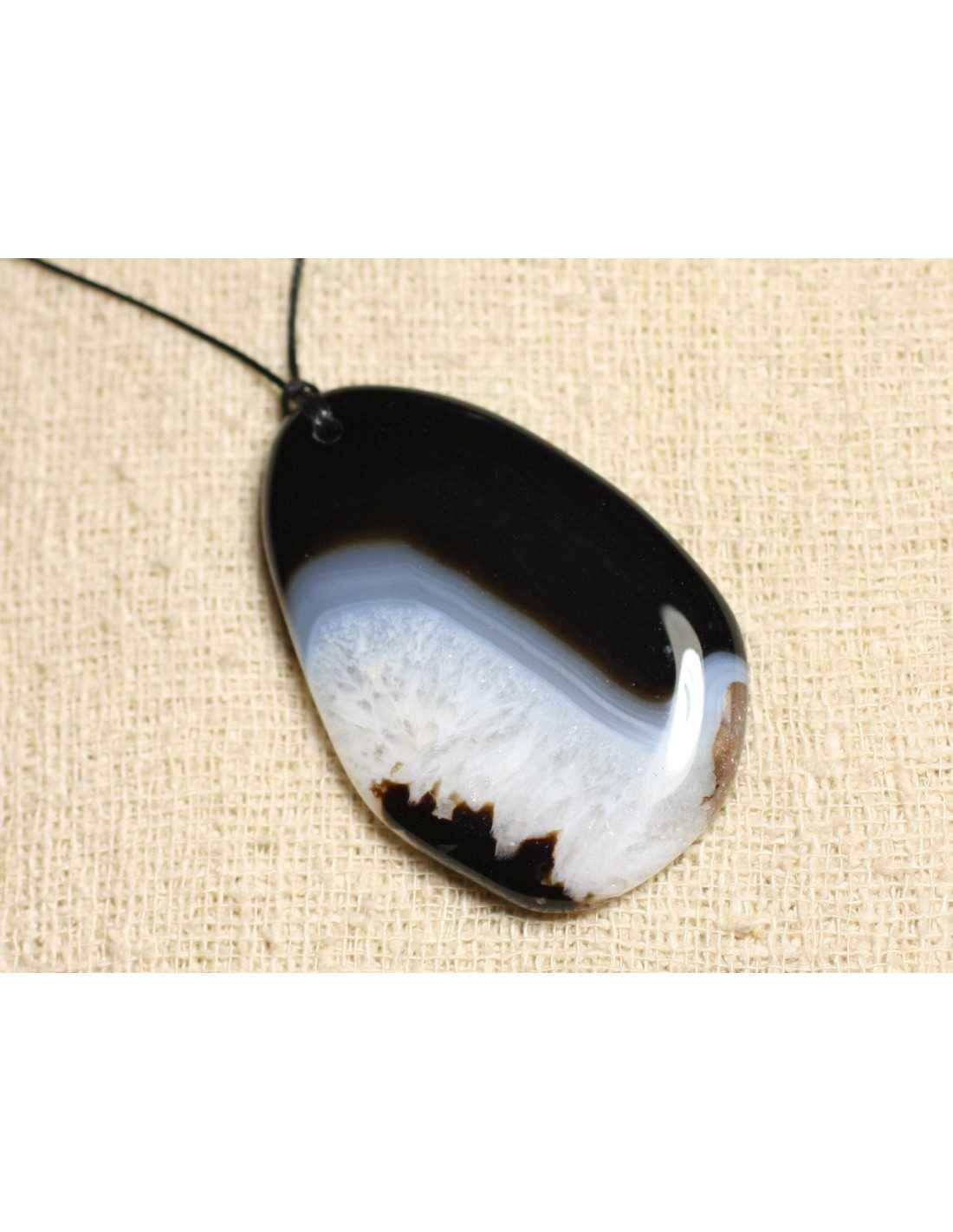 Ketting met hanger van zwart en wit agaat en kwartssteen Natuurlijke halfedelsteen Transparante zwart-witte kleur Druppelvorm Afmetingen Lengte 63 mm x Breedte 41 mm x Dikte 8 mm Gewaxt katoenen koord Verstelbare maat dankzij een praktische en solide schuifsluiting