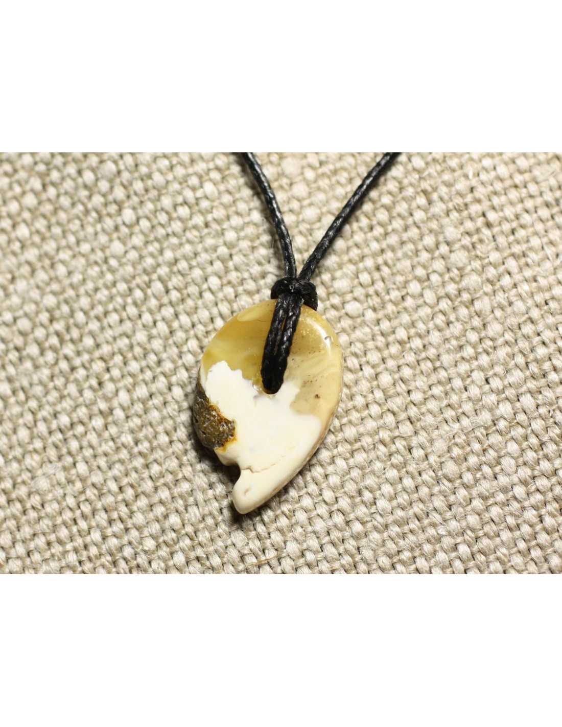 Kettinghanger in natuurlijk barnsteen Natuurlijk Baltisch barnsteen Kleur wit, geel Afmetingen Lengte 26 mm x Breedte 17 mm x Dikte 5 mm ongeveer 2 mm boren Gewaxt katoenen koord, kleur naar keuze Maat verstelbaar dankzij een praktische en stevige schuifsluiting