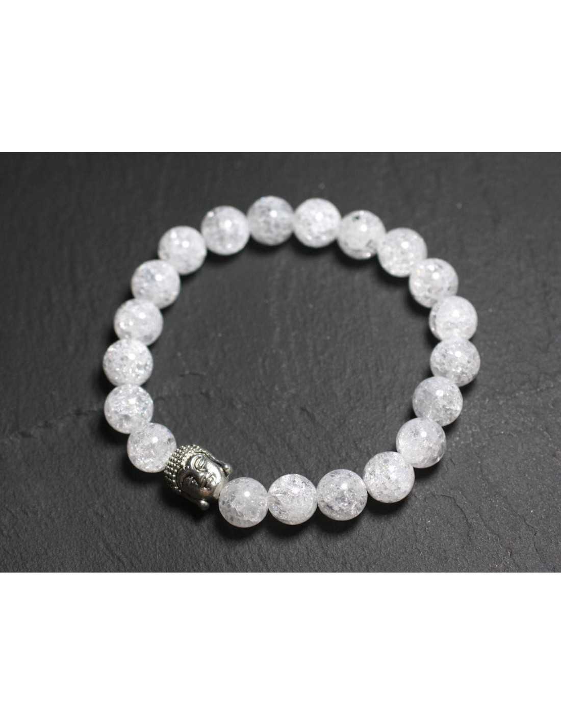 Boeddha armband en halfedelsteen - gebarsten kwarts bergkristal