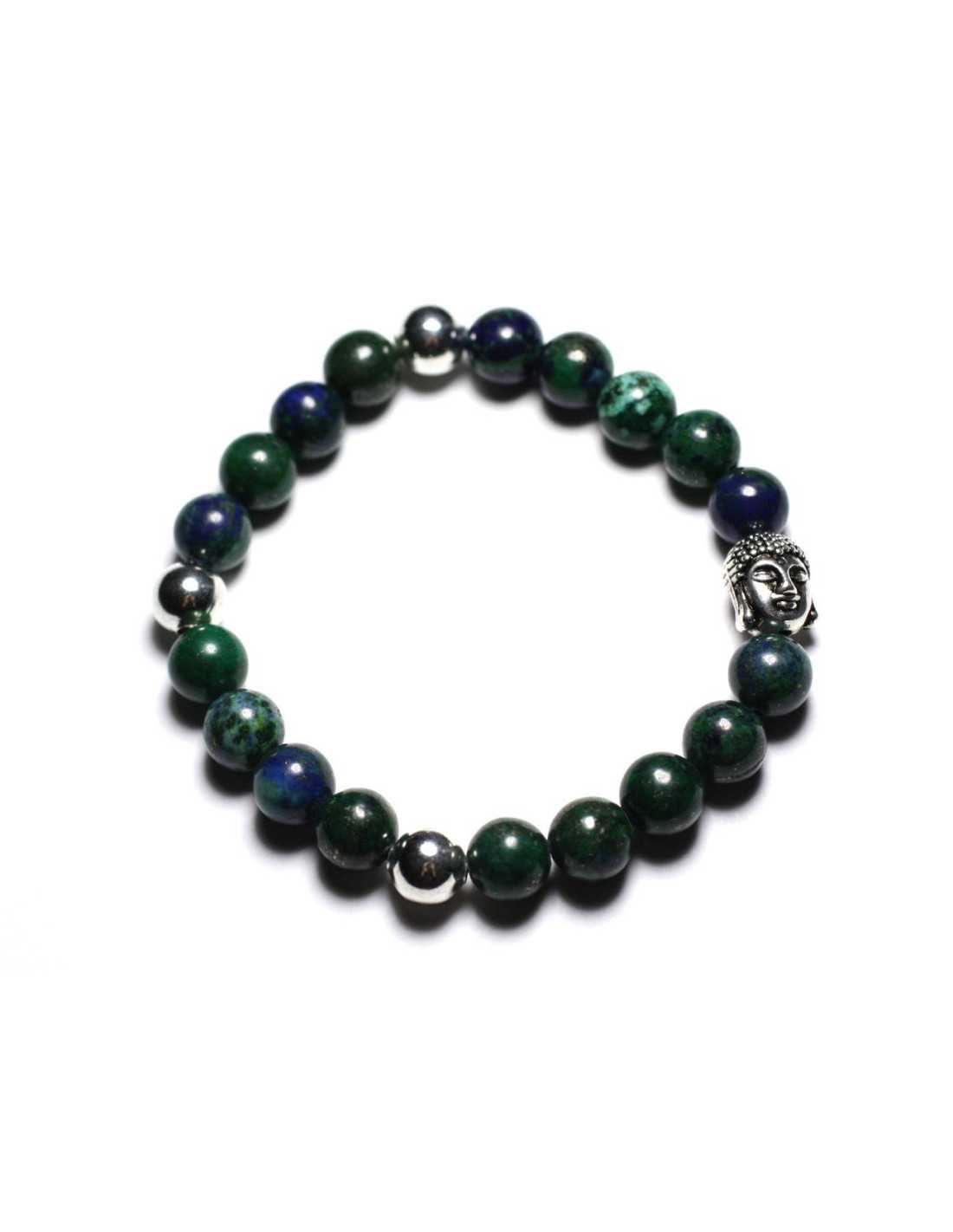 Elastische armband Boeddha en Chrysocolla steen Halfedelsteen Kleur blauw, groen Ronde kralen 8 mm Zilveren Boeddha kralen 12 mm en rond 8 mm Armband gemaakt van elastische vezels, solide en resistent, breekt niet Lengte 17 cm Binnendiameter van de armband ongeveer 5,5 cm Grootte van de armband aangepast op aanvraag Andere stenen of mix van stenen mogelijk **** **** **** **** Deugden van Chrysocolla: Chrysocolla is een kalmerende steen, het helpt bij het zelfbewustzijn, balans, zelfvertrouwen, meditatie, innerlijke rust. Het houdt negatieve emoties weg (schuldgevoel, angsten, negativiteit ...), het zorgt voor welzijn. Het versterkt vriendschappelijke relaties, helpt begrip, dialoog en tolerantie. Het verzacht de pijn van het hart, het verdriet, versterkt het vermogen om lief te hebben. Het helpt veranderingen te accepteren, moeilijke en gecompliceerde situaties te overwinnen.
