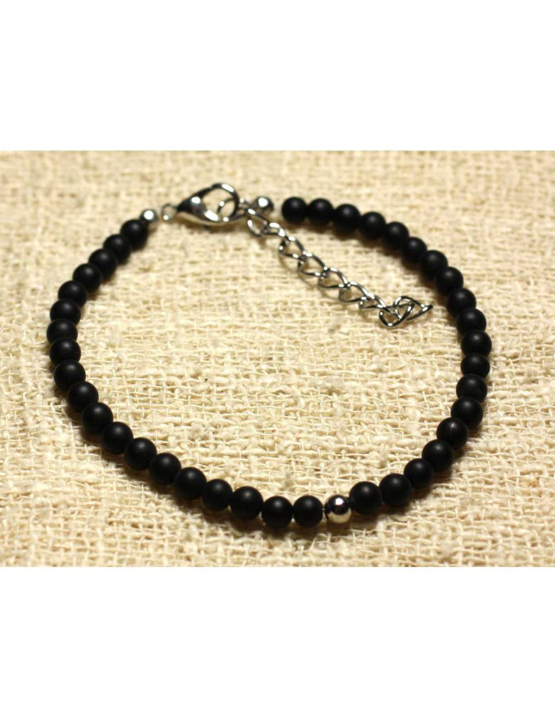 Armband 925 Zilver en halfedelsteen Onyx Mat zwart Natuurlijke halfedelsteen Kleur Mat zwart Ronde kralen Afmetingen ca. 4 mm Zilver 925/1000 ronde kraal 3 mm Armband gemaakt van sterk en bestendig nylondraad Karabijnsluiting en ketting in 925/1000 Zilver Lengte 17cm + 4 cm zilveren ketting