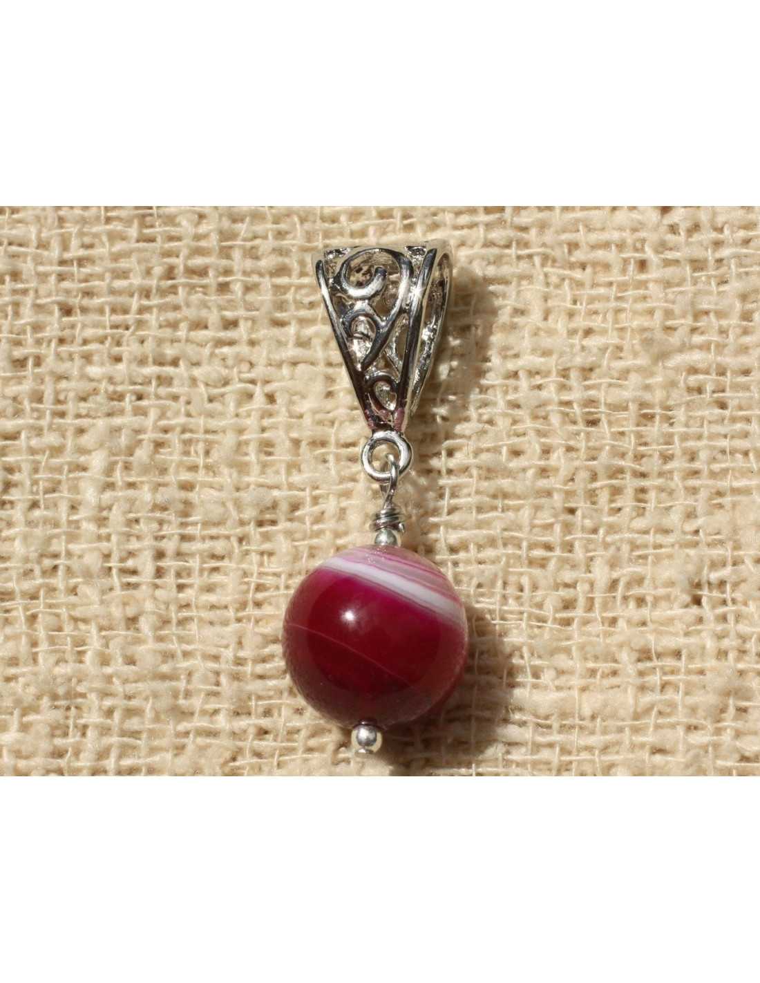 Hanger met halfedelsteen Fuchsia Agaat Natuurlijk getinte halfedelsteen Kleur Roze, fuchsia, wit, transparant Bolvorm 12 mm Kraal Filigraan Zilver Metaal Rhodium Binnenafmetingen 11 x 6 mm Hanger verkocht met een ketting van organza of gewaxt katoen Personalisatie mogelijk met stenen en kleuren van uw keuze