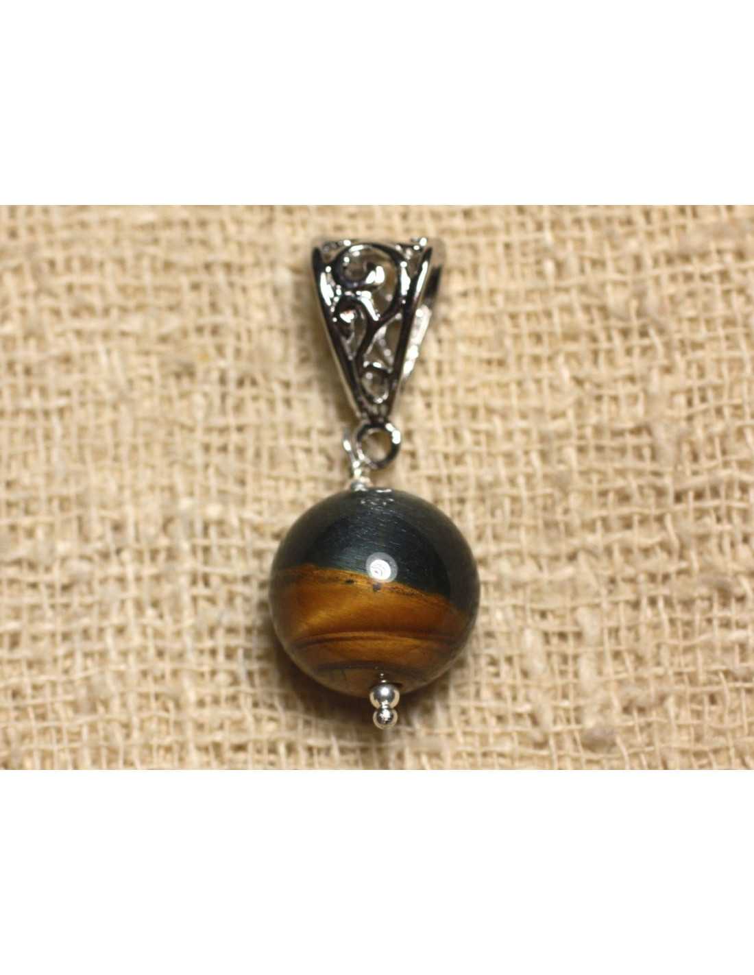 Halfedelsteen hanger Tijgeroog en Falcon Natuurlijke halfedelsteen Kleur zwart, goud, brons, blauw met reflecties Ronde parel Afmeting 14 mm Filigraan Hanger in gerhodineerde kwaliteit Zilver Metaal Afmetingen 11 x 6 mm Hanger verkocht met een organza of katoenen ketting gewaxt Maatwerk mogelijk met stenen en kleuren naar keuze!