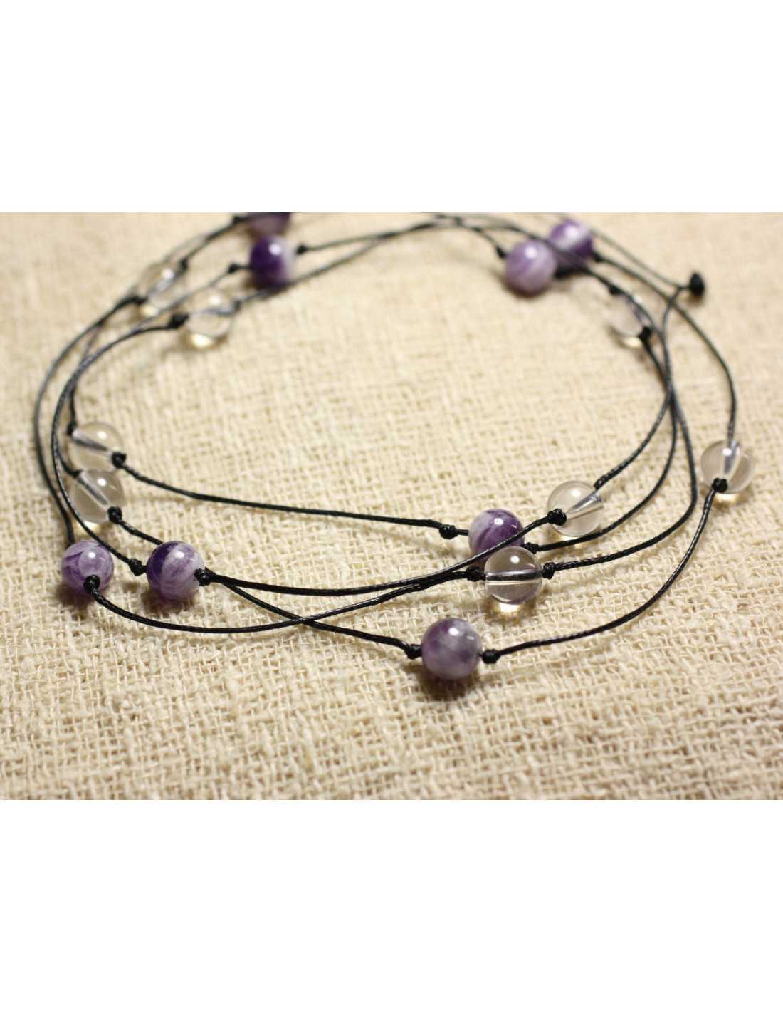 Amethiststenen en Bergkristal Kwarts Lange ketting Natuurlijke fijne stenen Ronde stenen 8mm Gemonteerd op gewaxt katoen Lengte 108cm ongeveer Kan gedragen worden als een lange ketting, als een dubbele rij ketting, als een meerrijige armband Maatwerk mogelijk met stenen en kleuren naar keuze! ***** ***** ***** ***** Deugden van stenen: Amethist: wijsheid, spiritualiteit, meditatie, creativiteit, sereniteit Kwarts bergkristal: steen van licht, energie, zuiverheid, intuïtie, meditatie