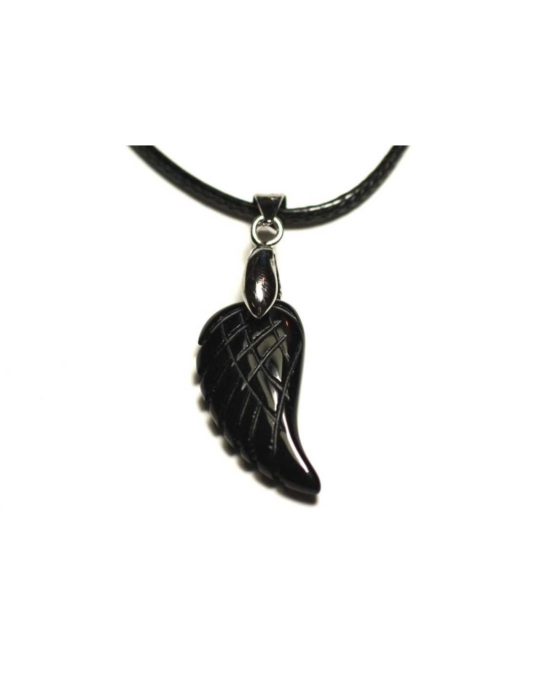 Stenen hanger ketting - gegraveerde vleugel 24 mm zwarte agaat