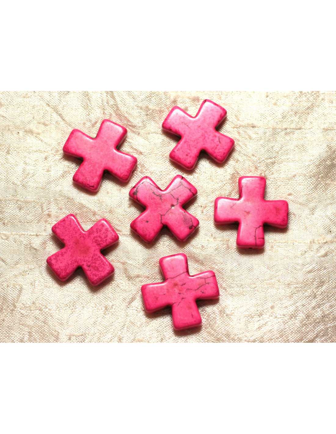 Draad 39cm - Synthetische turkoois steen kralen Synthetisch turkoois kruis, opnieuw samengesteld Kleur Neon roze Kruisvorm, geboord in de lengte Afmetingen Lengte Breedte 30 mm x Dikte ongeveer 6 mm Boorafmeting ongeveer 1 mm Verkocht per draad van 39 cm Ongeveer 12 kralen per draad