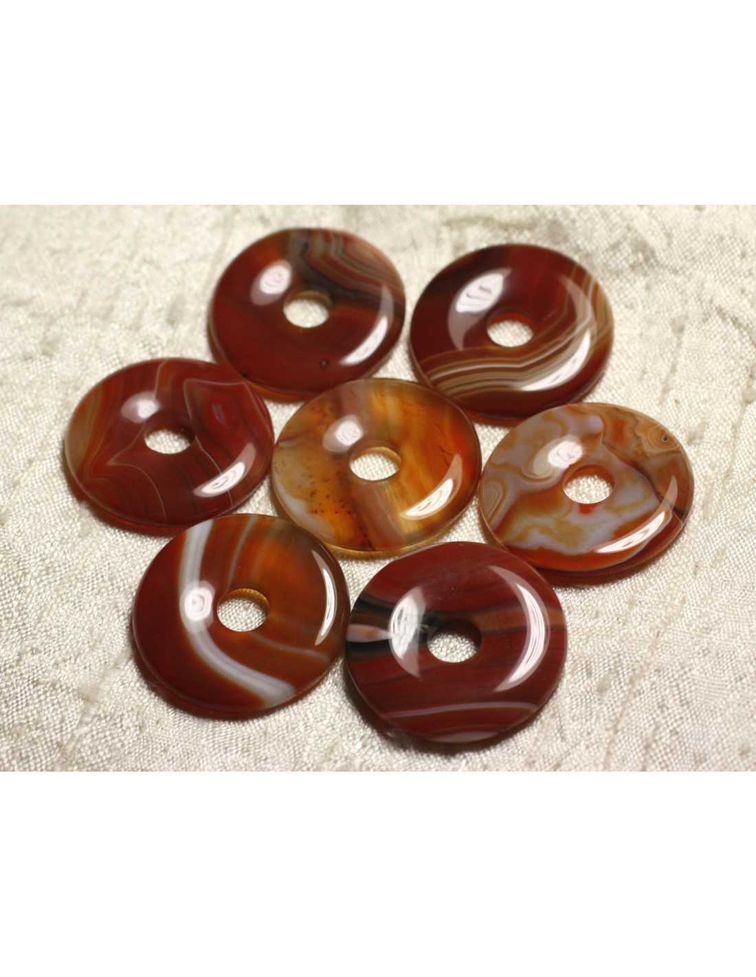 Rood oranje agaat steen hanger ketting Getinte natuurlijke halfedelsteen Kleur rood oranje, geel, transparant Donut vorm Afmetingen Diameter 30 mm x Breedte 12 mm x Dikte ongeveer 6 mm Centrale opening 7 mm Gewaxt katoenen koord Kleur naar keuze Verstelbare maat dankzij een praktische schuifsluiting en solide