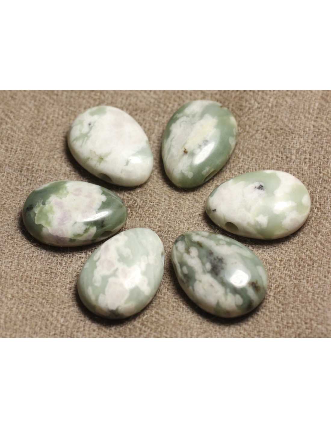 Hanger met druppel halfedelsteen - groene en witte jade 25 mm 4558550030412