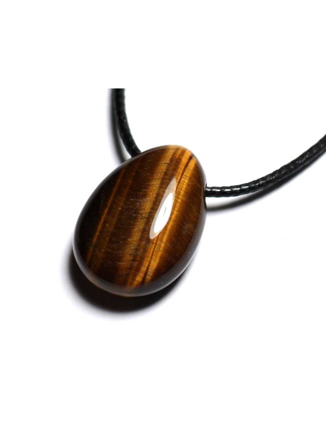 Collier Pendentif Pierre semi précieuse - Oeil de Tigre Goutte 25mm