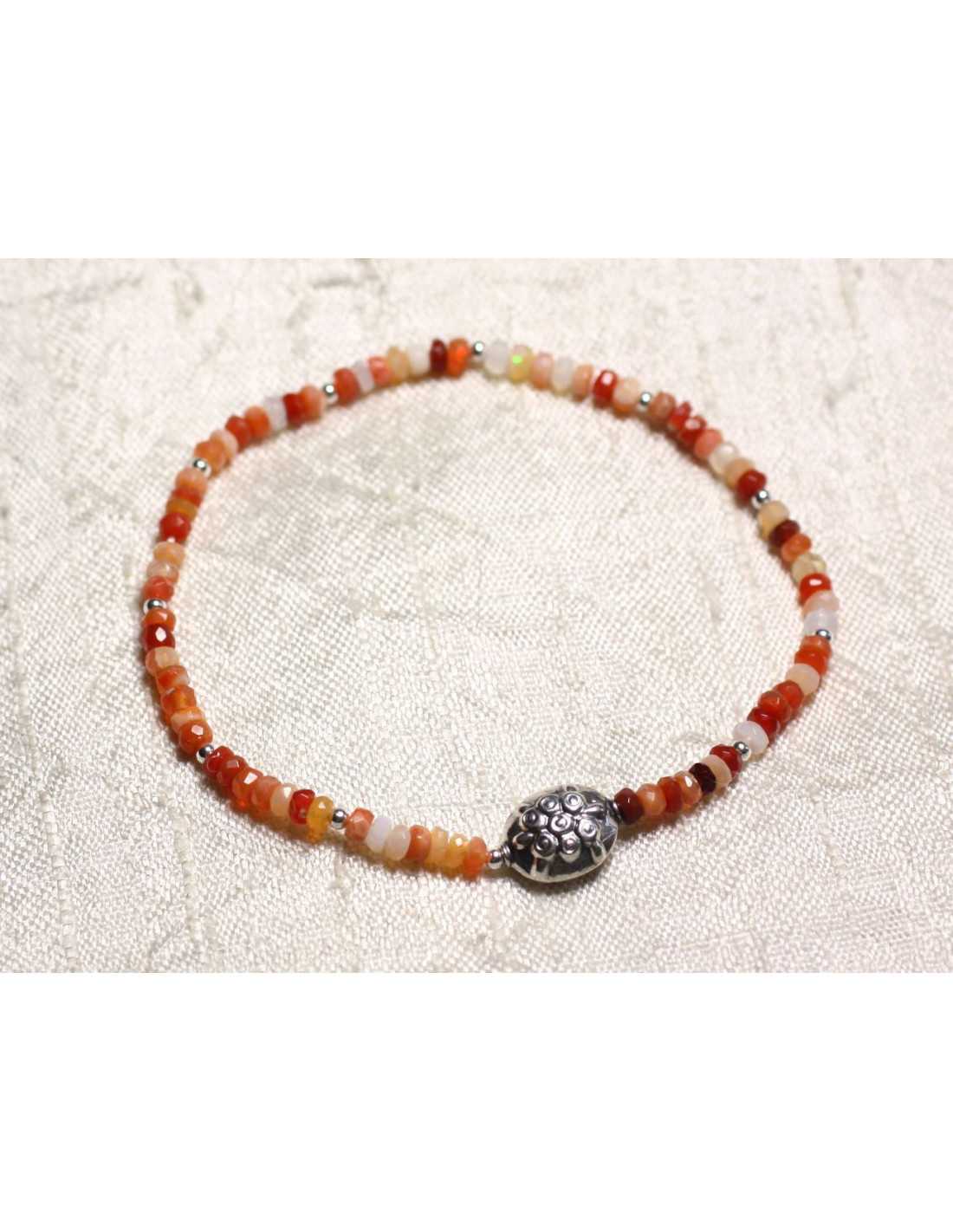 Armband 925 Zilver en Fire Opal Stone facetgeslepen ringen 3mm Natuurlijke edelsteen Kleur wit, geel, oranje, met enkele veelkleurige reflecties Facet rondel kralen 3x2mm 925 Zilver ronde kralen 2mm 925 zilveren sluiting en ketting Lengte 17cm + 4cm verlengketting van 925 zilver Gemaakt van sterk en bestendig fluorkoolstofdraad