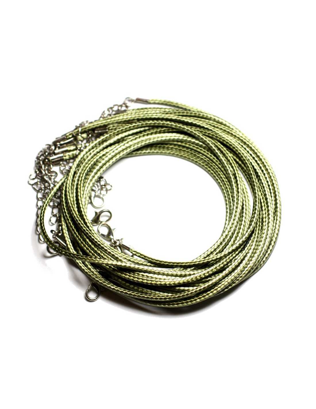 10st - Kakigroen 2 mm Kettingen van gewaxt katoen 45 cm