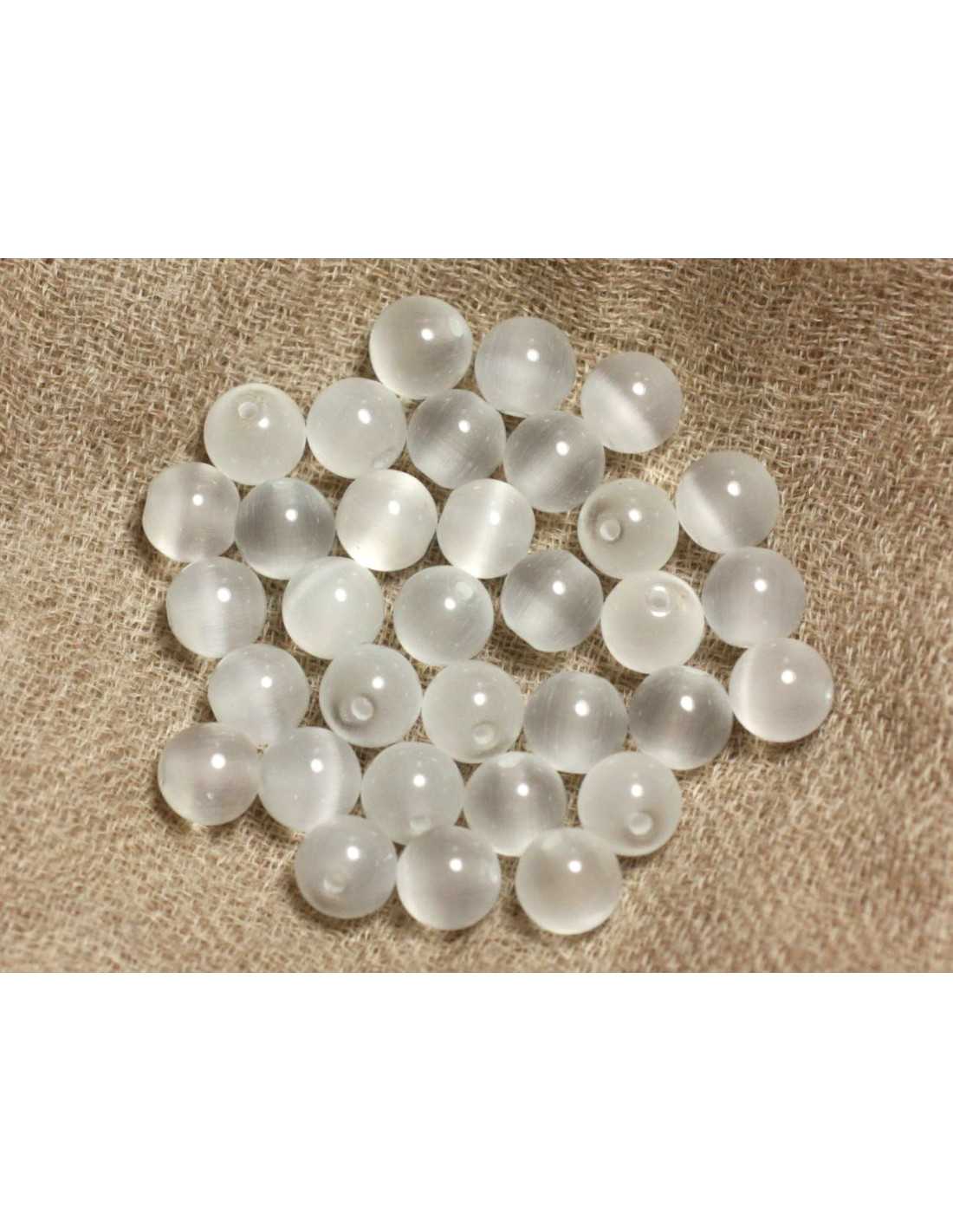 homemade4pc - Perles en Verre Oeil de Chat Boules 12mm Gris Argenté
