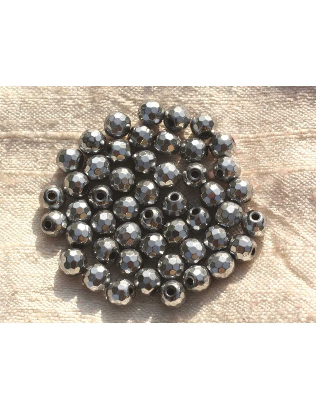 10st - Stenen Kralen - Gerhodineerd Hematiet Facet Ballen 6mm 4558550006592