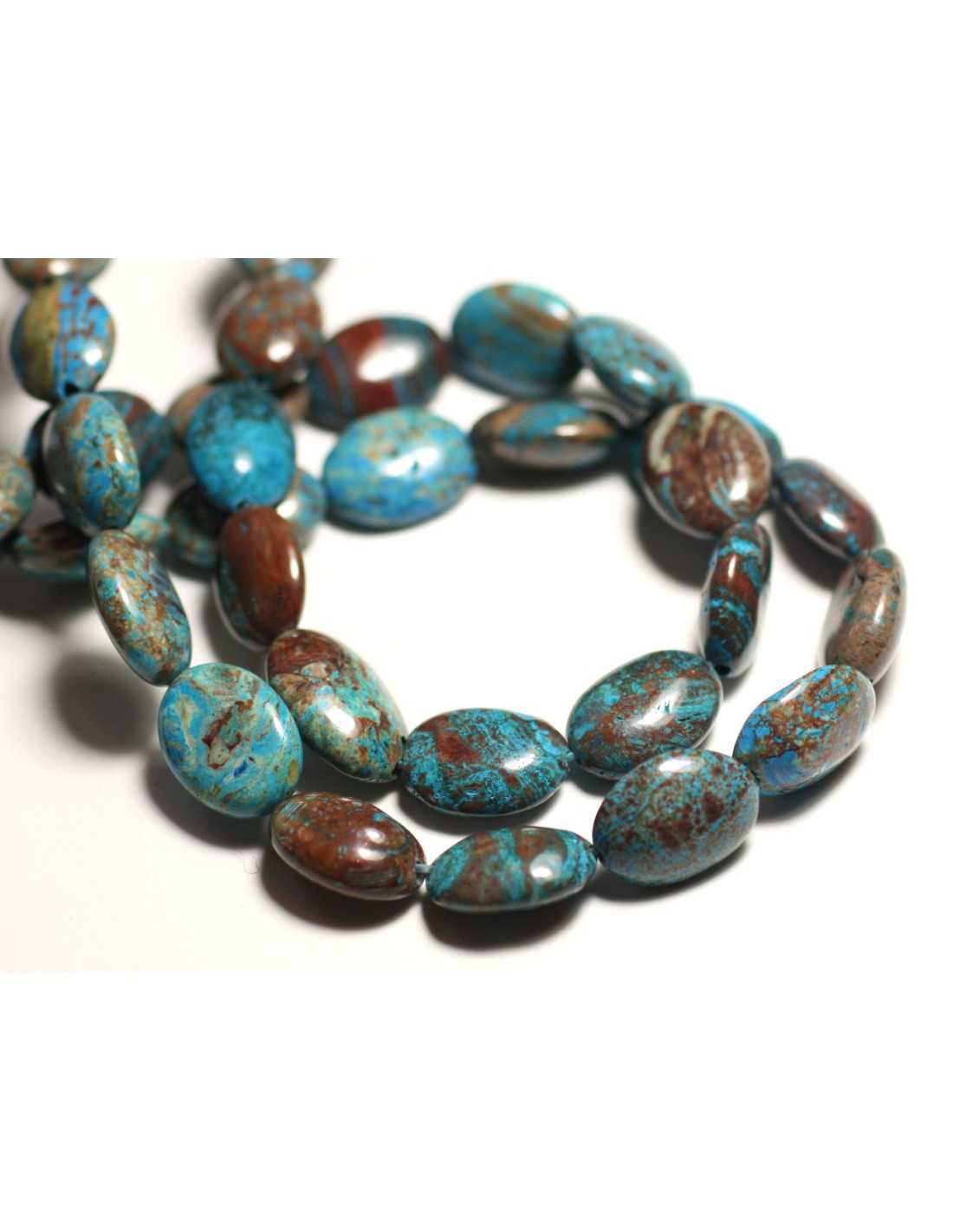 Draad 39cm - Jaspis stenen kralen Herfstlandschap Natuurlijk getinte halfedelsteen Kleur bruin, zwart, blauw, turkoois Ovale vorm Afmetingen Lengte 16 mm x Breedte 12 mm x Dikte ongeveer 6 mm Boorafmeting ongeveer 1 mm Verkocht per draad van 39 cm Ongeveer 25 kralen per draad