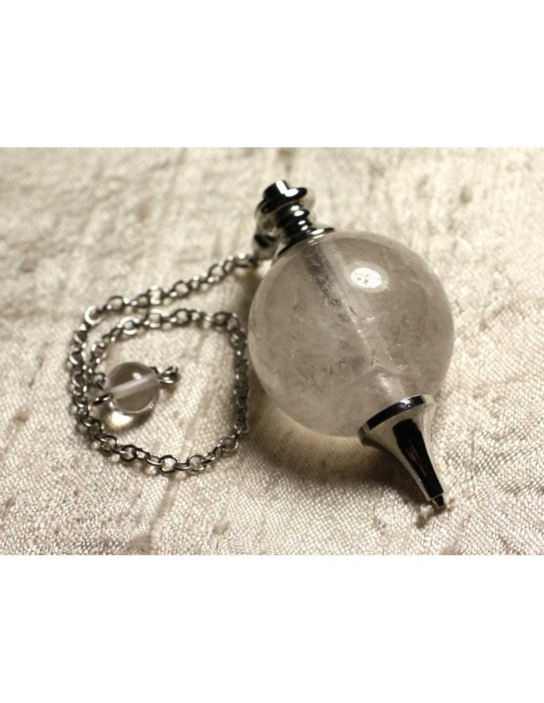 Pendel Zilver Metaal Rhodium en halfedelsteen - Kristallen Kwarts Ball 30mm