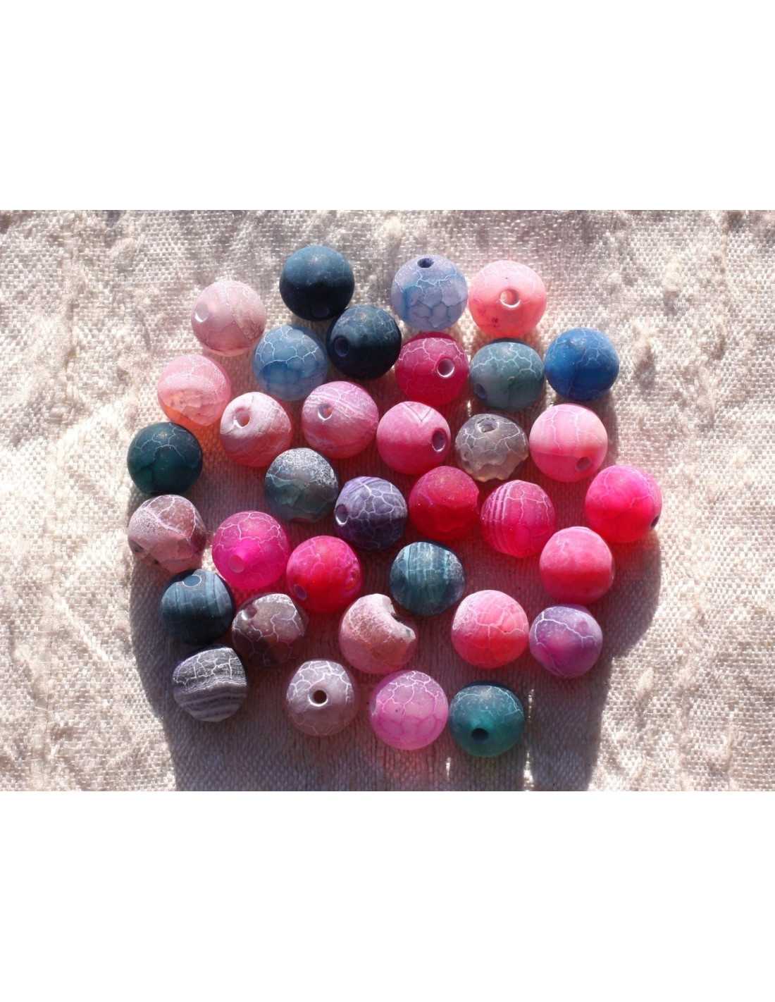 10st - Stenen kralen - Blauw Roze Paars Agaat Crackle Matte 8mm Ballen 4558550010964