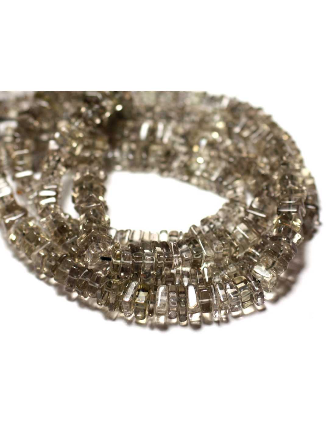 Draad 40 cm - Rookkwarts steen kralen Natuurlijke halfedelsteen Kleur bruin bruin, taupe, transparant Vorm Heishi vierkante ringen Afmetingen 3-4 mm x dikte 1-2 mm ongeveer Boorafmeting ongeveer 0,3 mm Verkocht per 40 cm draad Ongeveer 190 kralen per draad