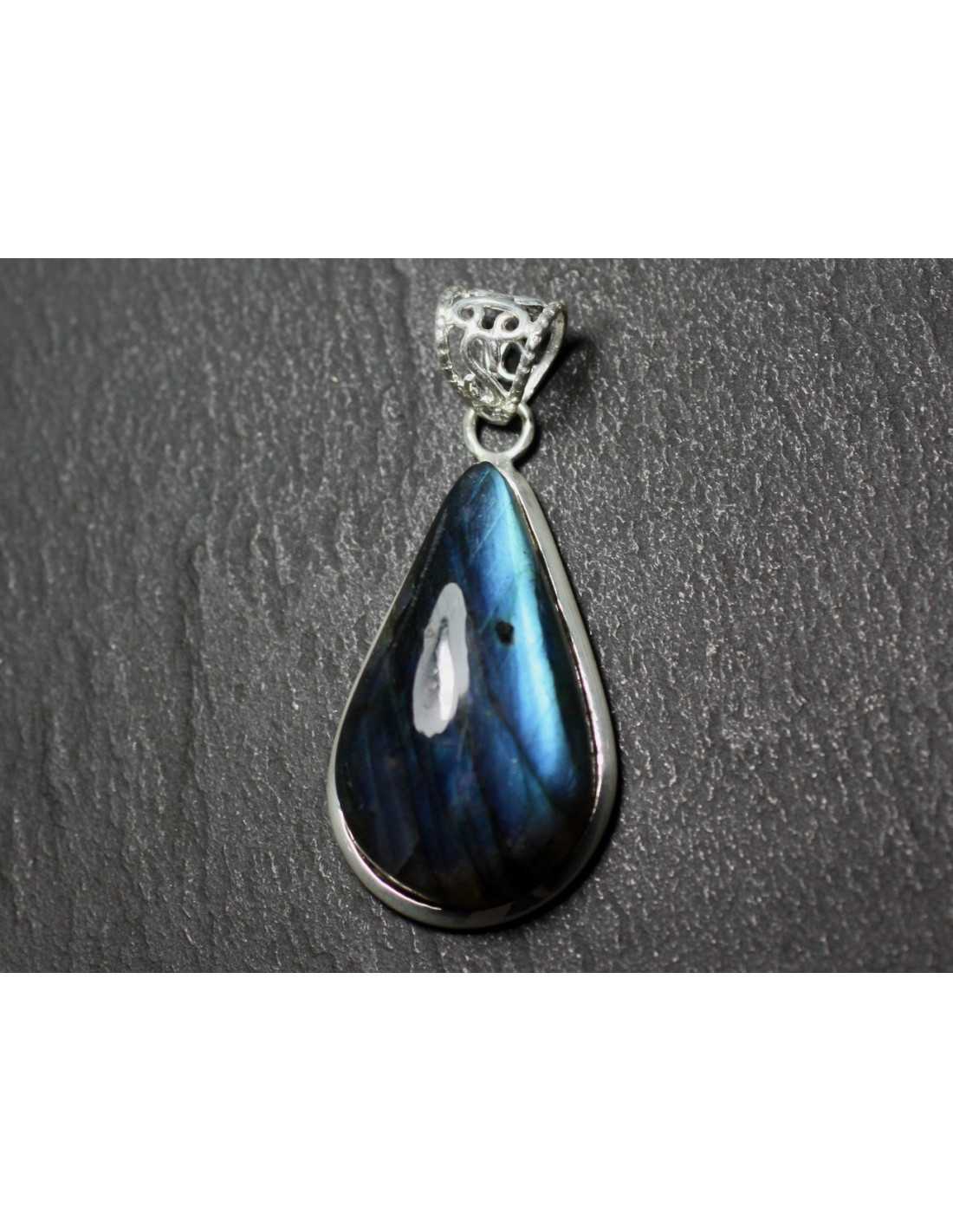 n22 - Hanger van zilver 925 en steen - Labradoriet druppel 33x20mm - 8741140027268