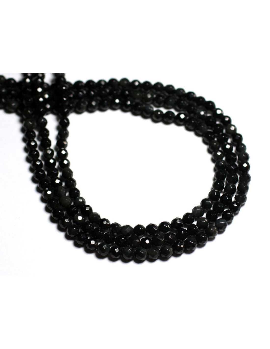 20st - Stenen Kralen - Regenboog Zwart Obsidiaan Facet Ballen 4mm