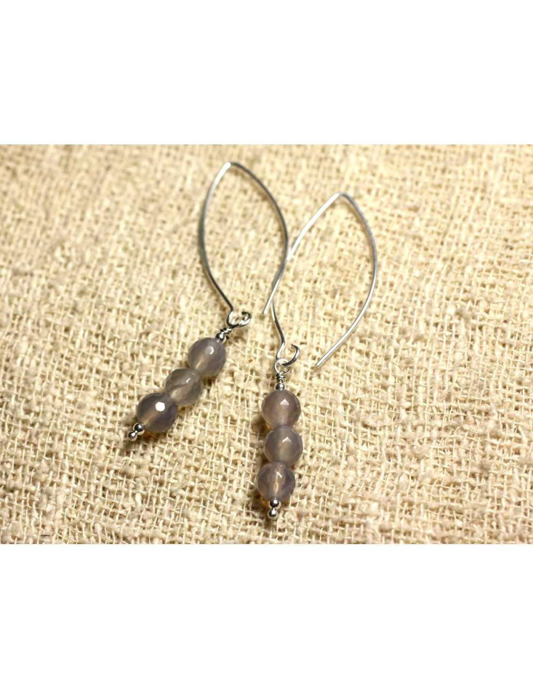 40 mm 925 sterling zilveren haken oorbellen - 6 mm gefacetteerde grijze agaat