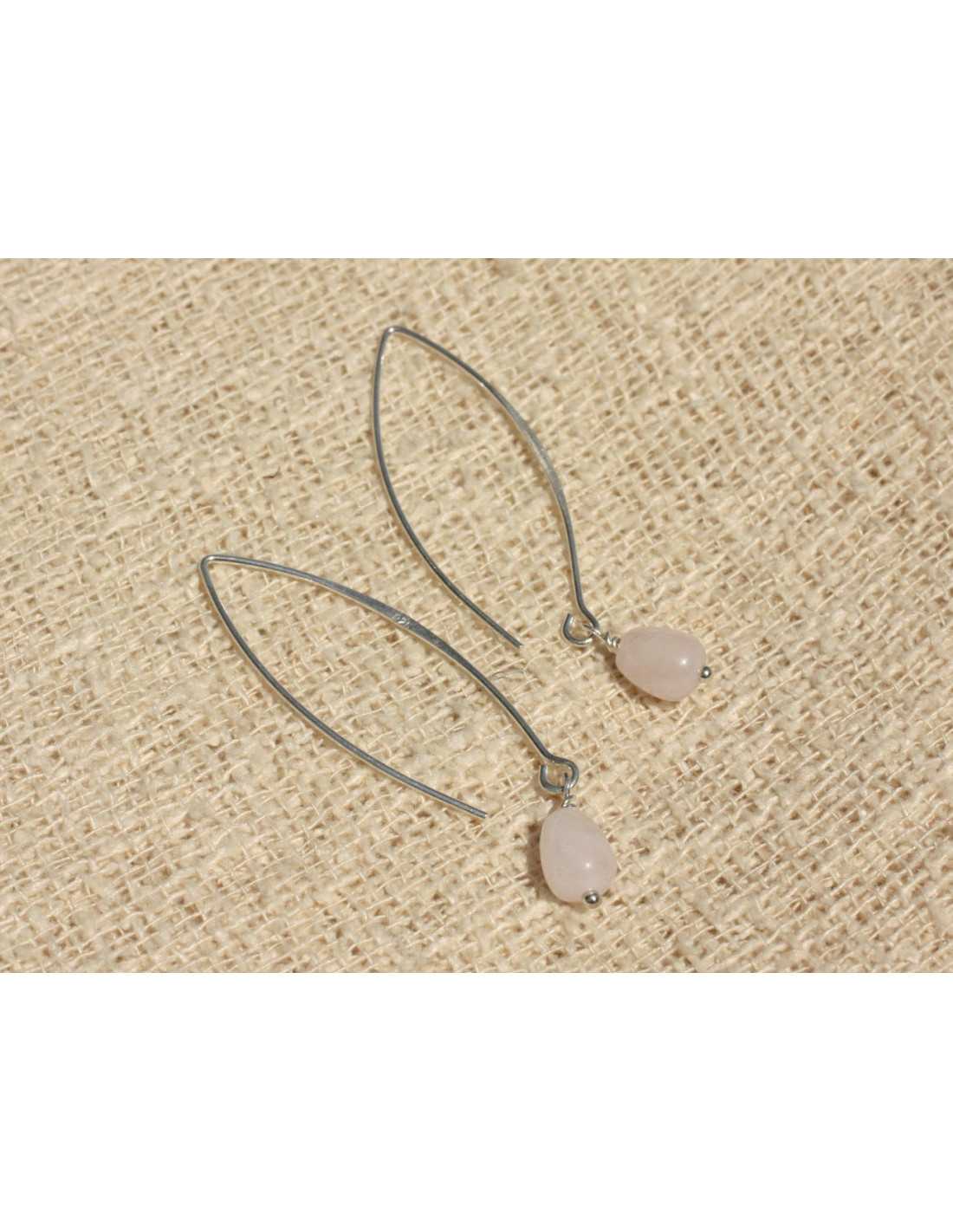 Oorbellen van 925 zilver en steen - Rozenkwarts 8x6 mm ronde druppels