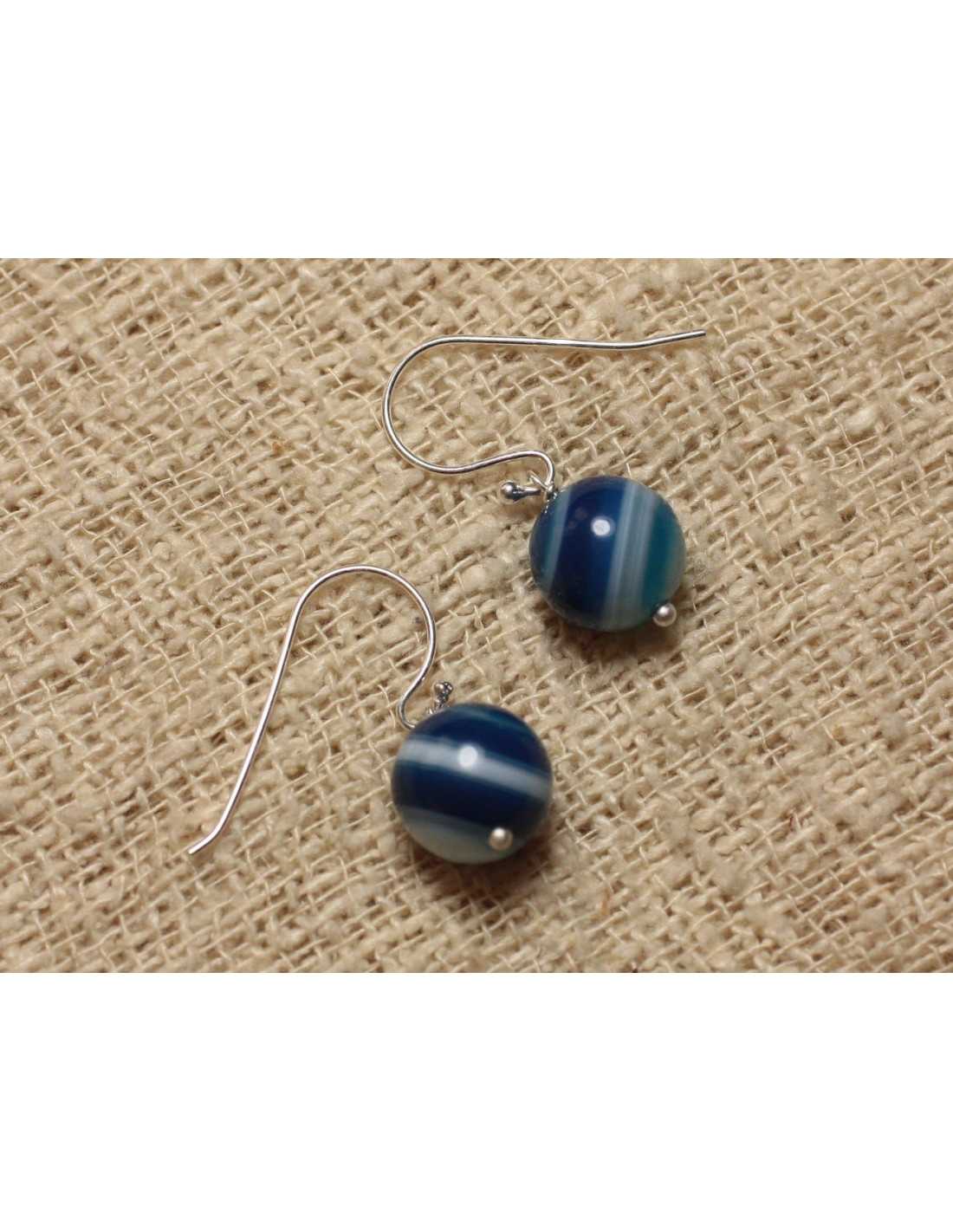 Oorbellen Zilver 925 en halfedelsteen Blauwe Agaat Halfedel natuursteen getint Kleur Blauw, wit, transparant Ronde kralen Afmeting 10mm Zilver 925/1000 oorhaakjes