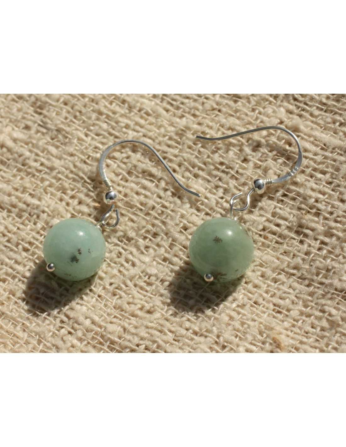 Oorbellen 925 Zilver en Turquoise Kwarts Steen Natuurlijke halfedelsteen Turkoois, zwart, transparante kleur Ronde kralen 10mm Haken Zilver 925/1000