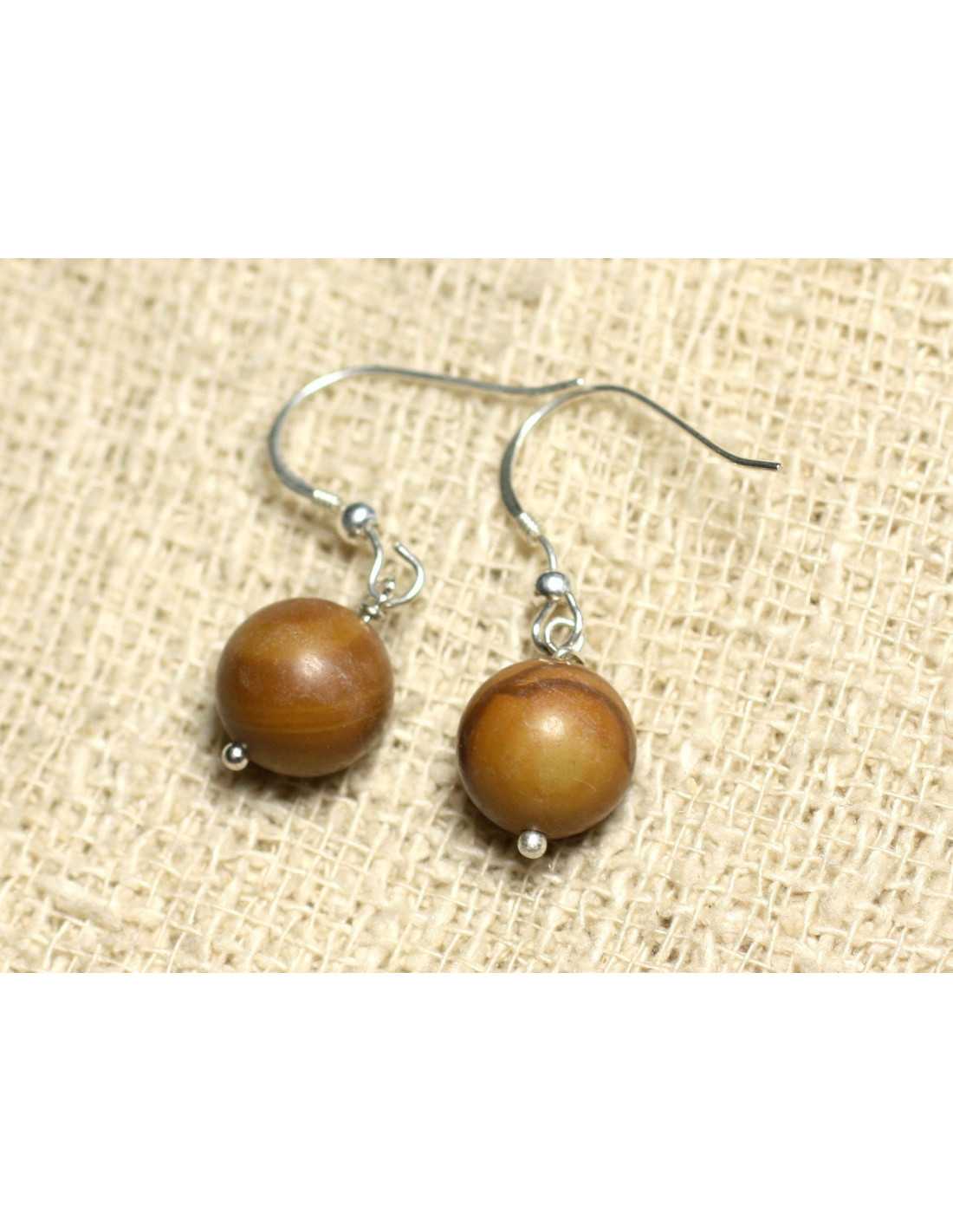 925 Zilver en Stenen Oorbellen - Houten Jaspis Balletjes 10mm