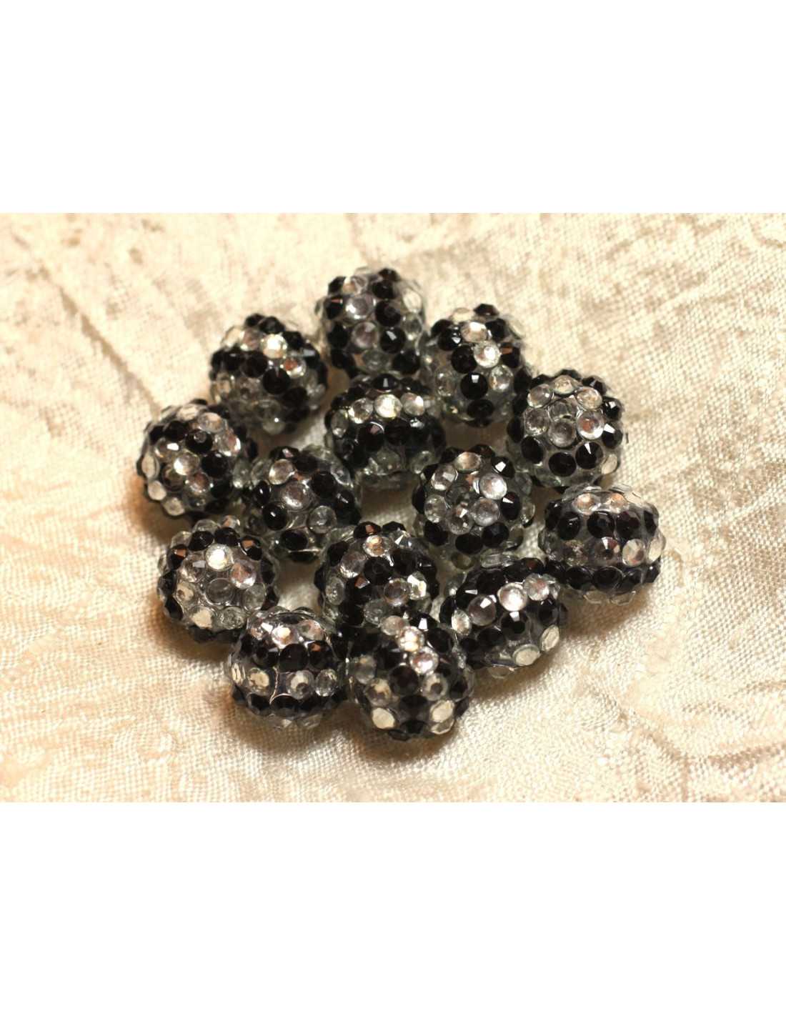 5st - Resin Shamballas kralen 14x12mm zwart en zilver N ° 2 4558550005328
