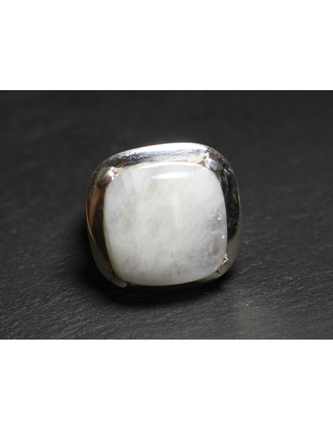 Ring Zilver 925 en halfedelsteen Maansteen Regenboog Natuurlijke halfedelsteen Witte kleur met blauwe reflecties Vierkante vorm Afmetingen 18 x 18 mm Zilver 925/1000 frame gegarandeerd 4 Gaffel Ringbreedte 23 mm Hoogte 12 mm Vingermaat: 52 Andere maten mogelijk