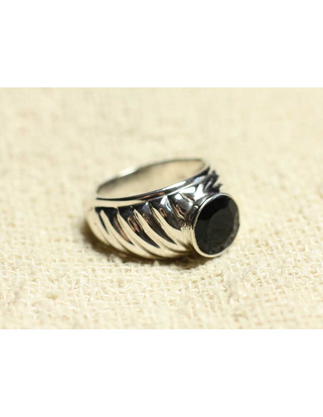 N121 - Ring van 925 zilver en steen - Zwarte Onyx Facet Rond 9 mm