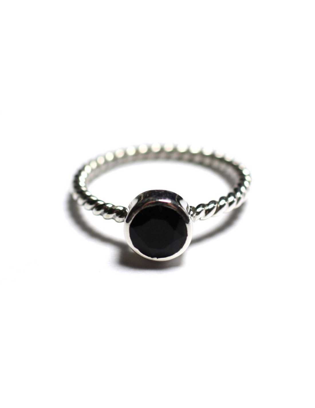N231 - Ring van 925 zilver en steen - 6 mm zwarte spinel twistring