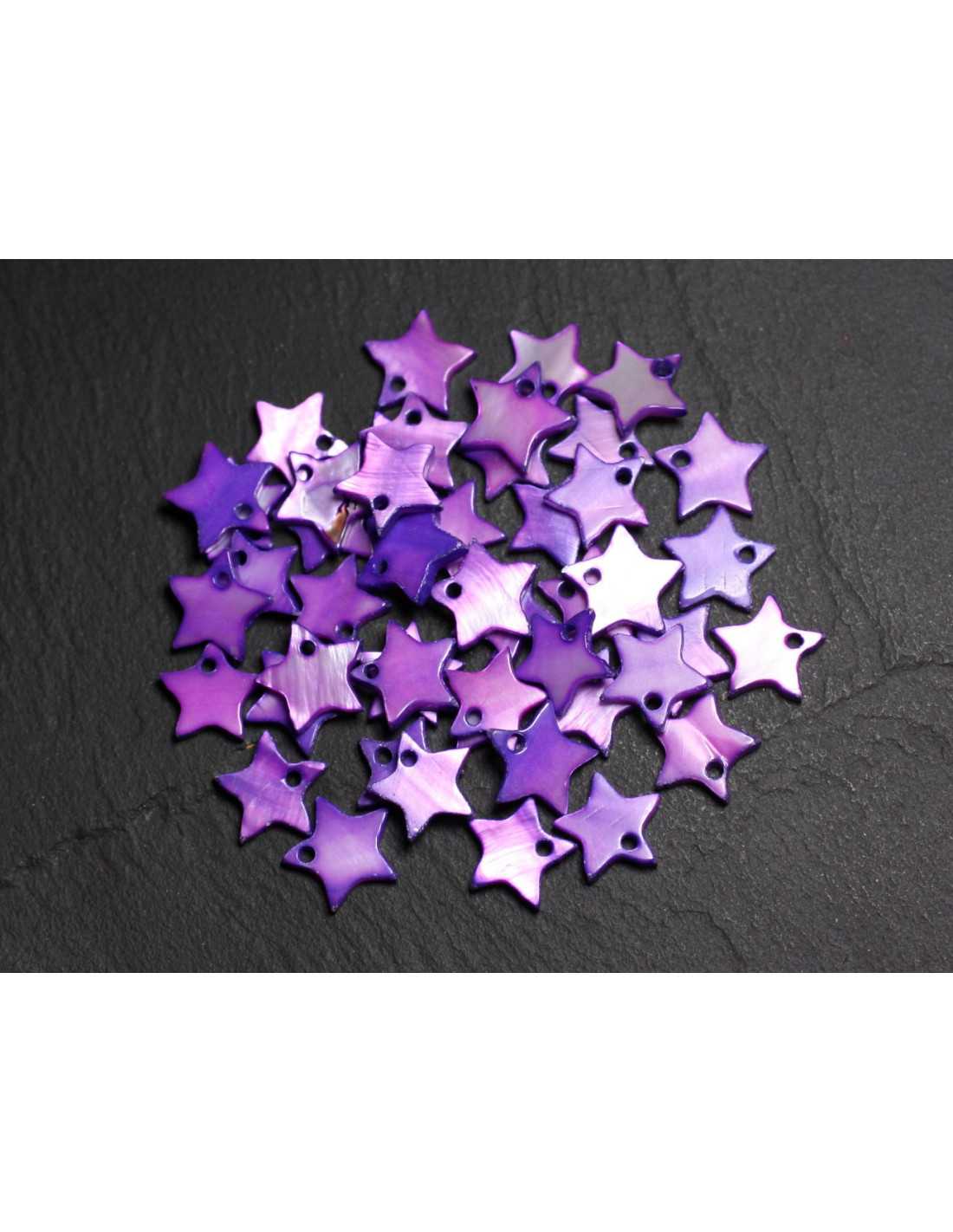 10st - Moeder van Pearl Hangers Charms Purple Stars 12-13mm