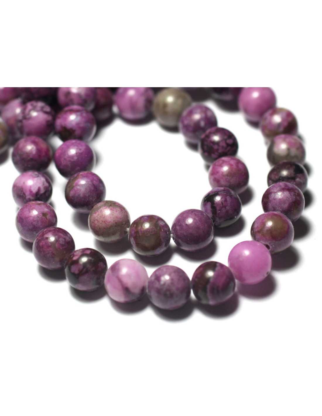 Rijg 39cm ongeveer 60st - Stenen kralen - Sugiliet balletjes 6 mm roze paars