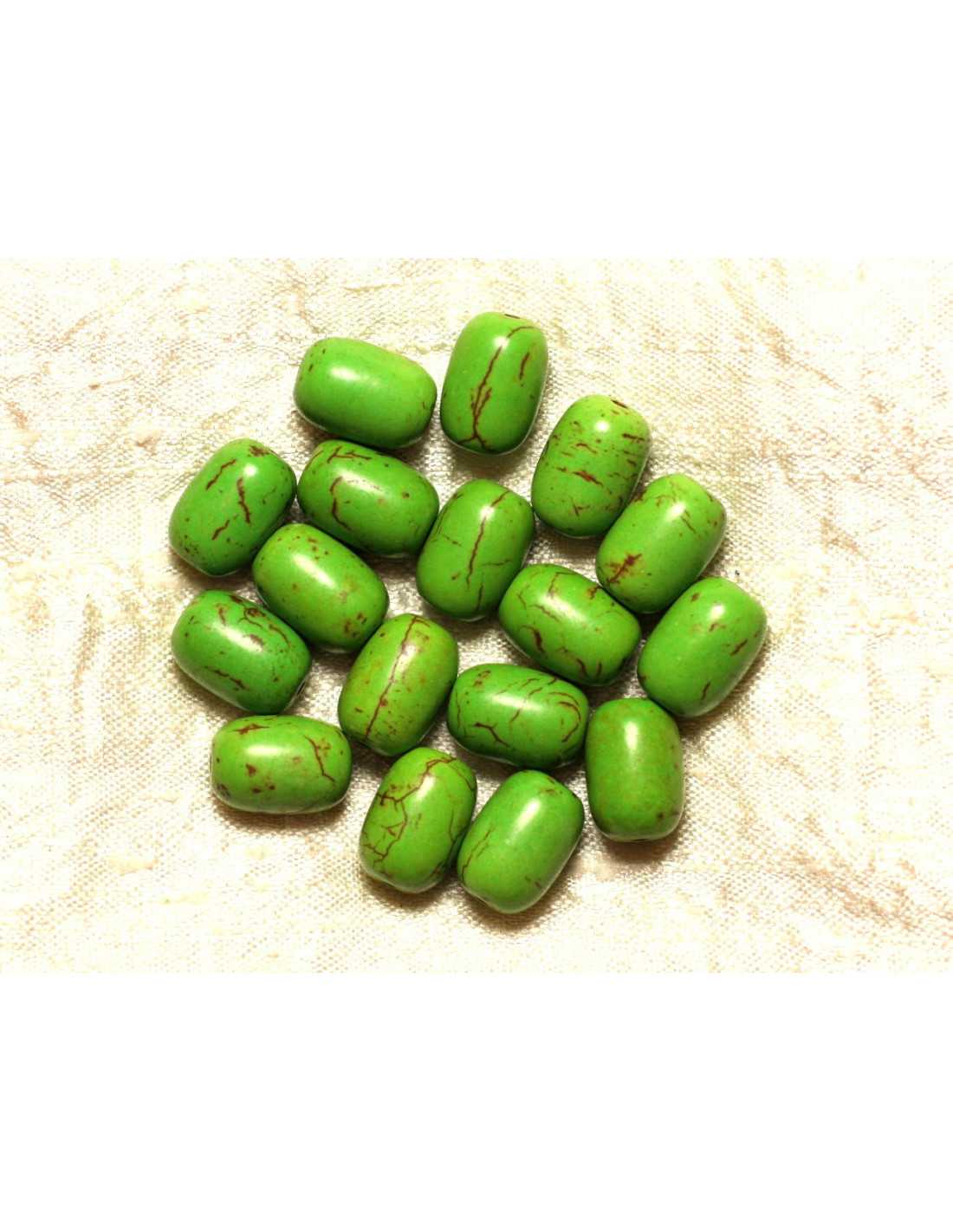 Draad 39 cm - Turquoise stenen kralen Gereconstitueerde synthese 14 mm vaten Synthetische steen Kleur groen Vorm Vaten in de lengte geboord Afmetingen Lengte 14 mm x breedte 9 mm ongeveer Boorafmeting ongeveer 1 mm Verkocht per draad van 39 cm Ongeveer 26 kralen per draad