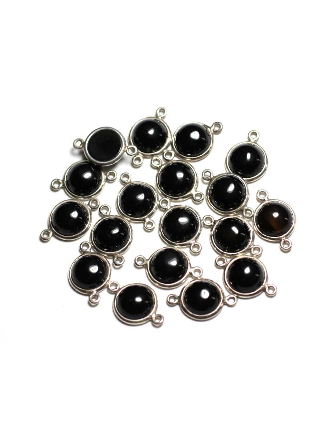 1st - 925 Zilveren Tussenstuk en Steen - Zwarte Agaat Rond 10 mm